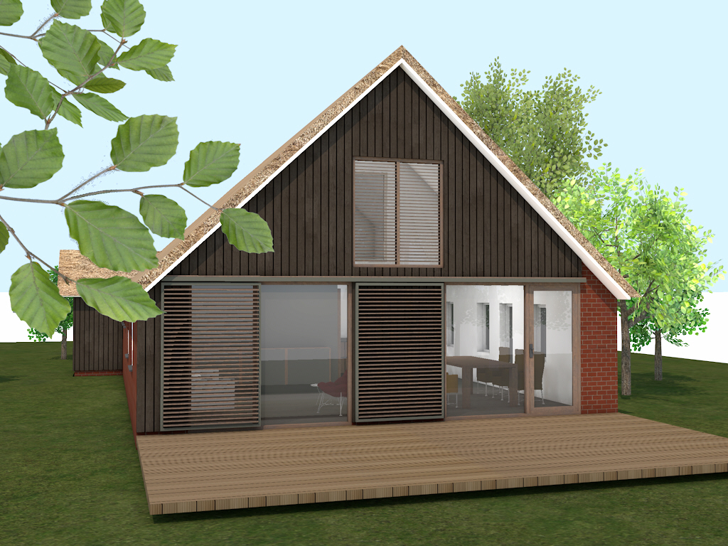 Voor een kleine boerderij in Drenthe die al vele verbouwingen heeft doorstaan heeft Bureau Siemer een ontwerp gemaakt voor een nieuwe indeling van het achterhuis en het wijzigen van de achtergevel. De gevel heeft een eigentijdse invulling gekregen, met zicht op het weidse landschap, met tegelijkertijd behoud van beslotenheid en intimiteit.  De zonwering middels beweegbare buitenshutters geeft de gevel een steeds wisselend beeld…