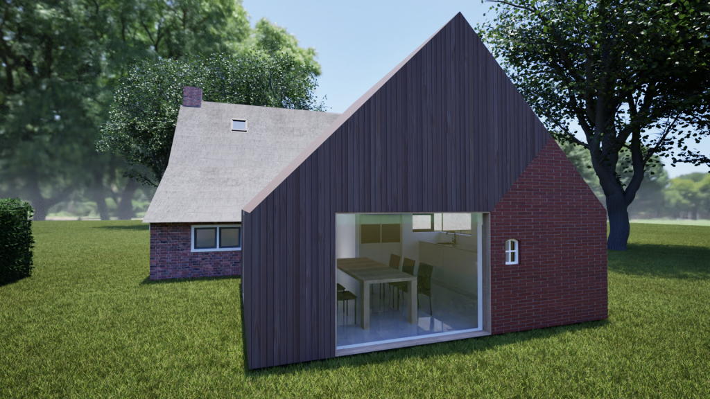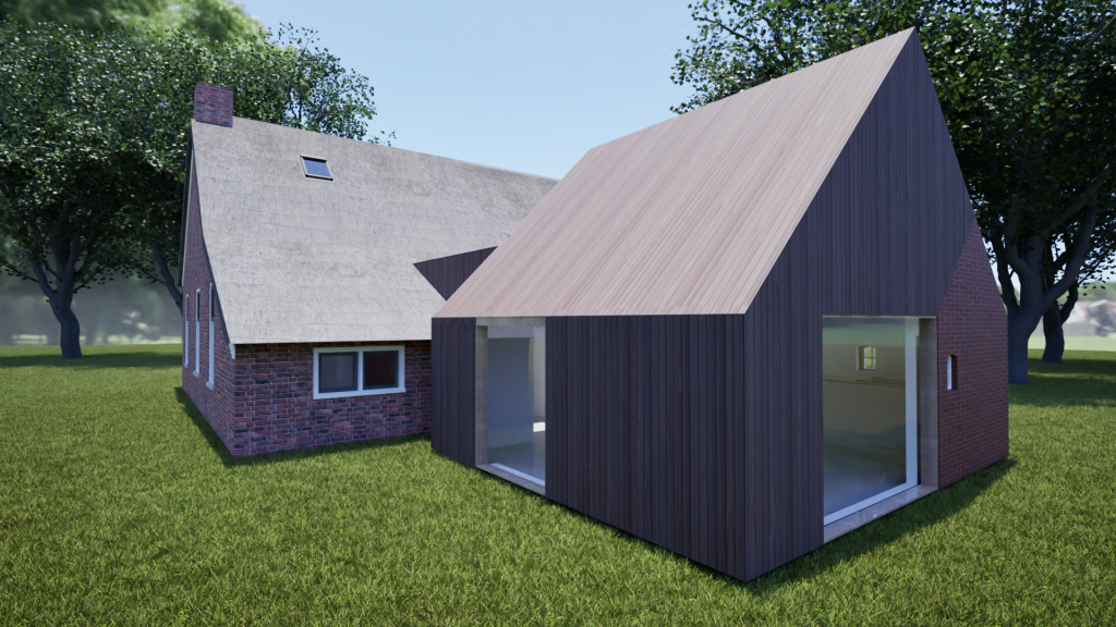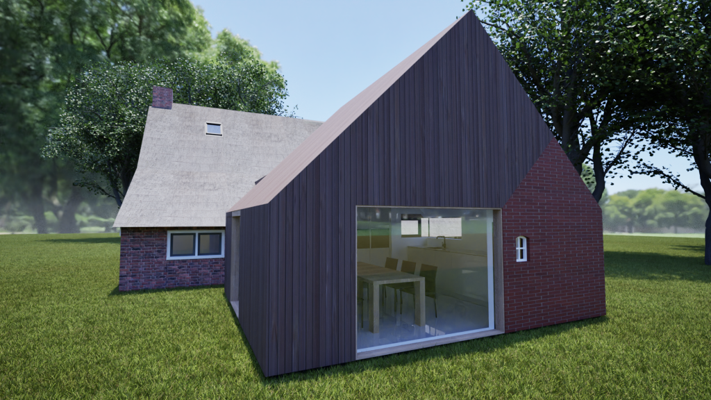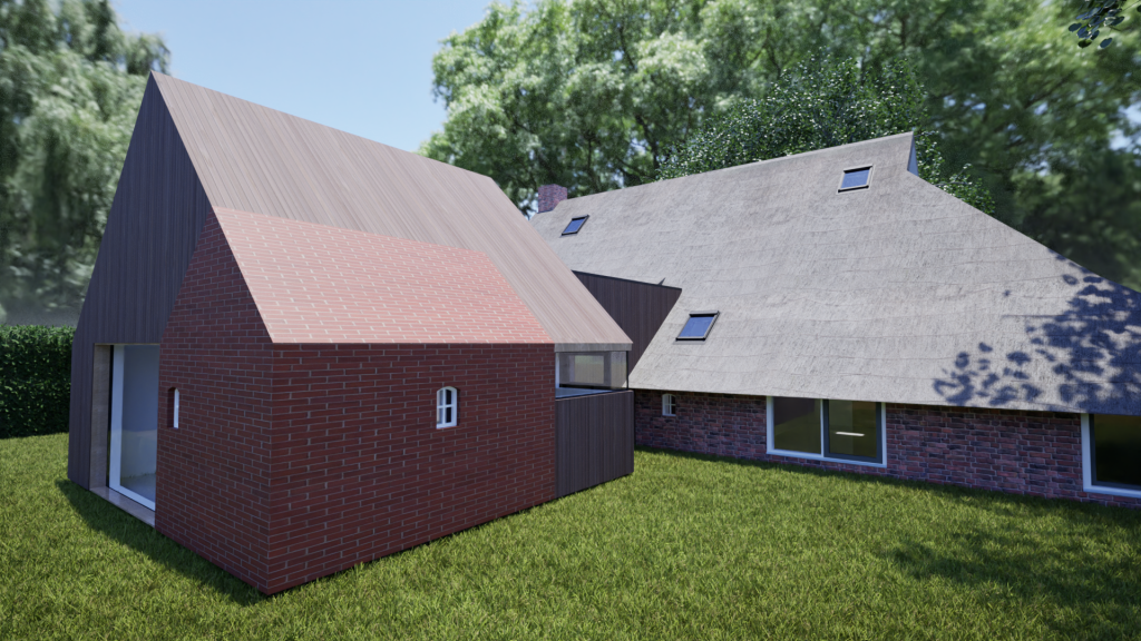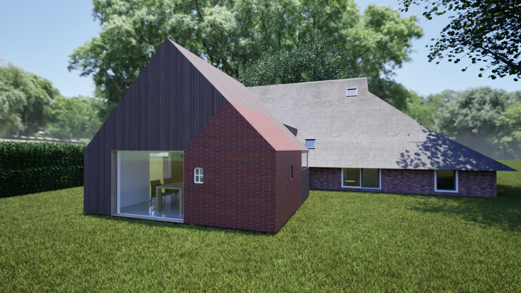 Verbouw boerderij – opnemen stookhuis in aanbouw