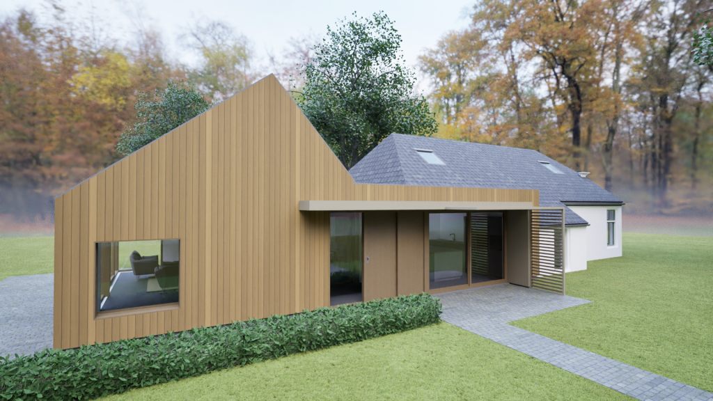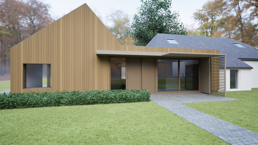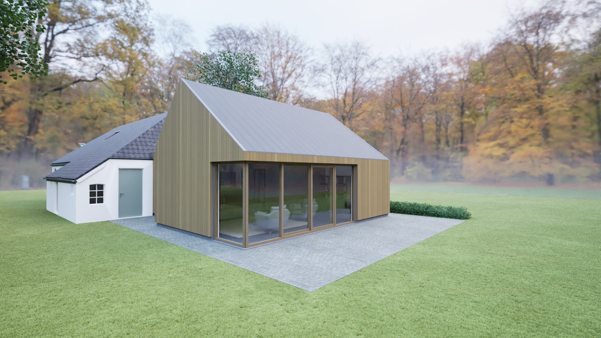 Deze voormalige keuterij ligt in het beschermd dorpsgezicht. Het aanzicht en de hoofdvorm zijn daarmee beschermd en moeten gehandhaafd blijven. Om meer ruimte te creëren is besloten aan de achterzijde uit te bouwen. De karakteristieke hoofdvorm blijft daarmee behouden. De eigentijds vormgegeven aanbouw heeft een asymmetrische dakvorm en is afgewerkt met houten delen wat resulteert in een zachtere en meer landelijke uitstraling. Hierdoor ontstaat een contrast met het strakke, wit gestucte boerderijtje.