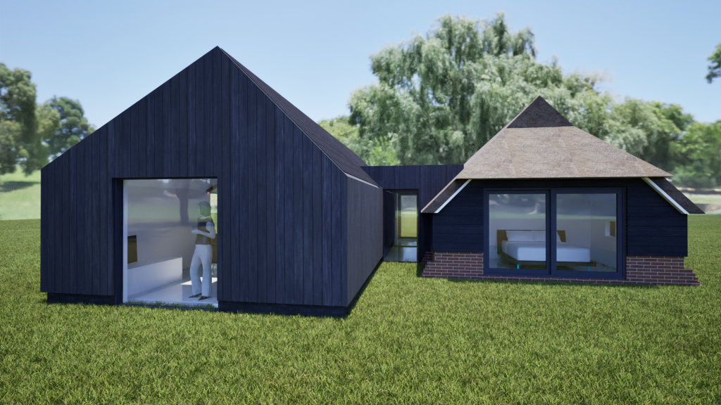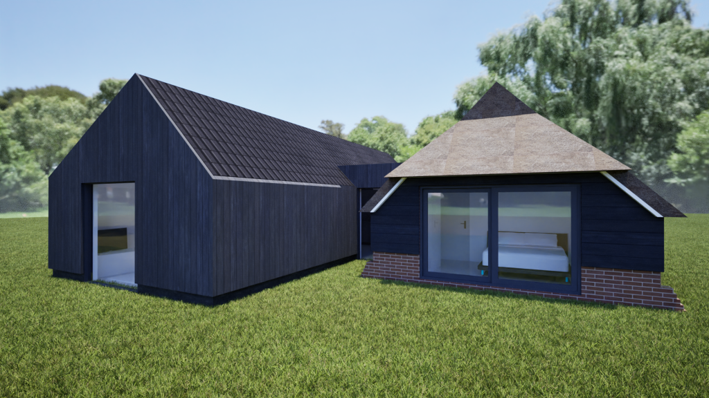 Een voormalige schaapskooi is in het verleden verbouwd tot woonhuis met een kleine aanbouw. De leefruimte was nog steeds erg beperkt en de nieuwe eigenaren hadden de wens om meer ruimte en lucht te creëren in de woning. De eigentijdser vormgegeven nieuwe aanbouw en enkele kleine ingrepen in de monumentale schuur hebben meer eenheid gebracht in het geheel. De schaapskooi is onderdeel van een ensemble van een (aan de overzijde van de weg gelegen) boerderij met schuren. Bij een rijksmonument wordt het ontwerp beoordeeld door de monumentencommissie en de Rijksdienst voor het Cultureel Erfgoed.