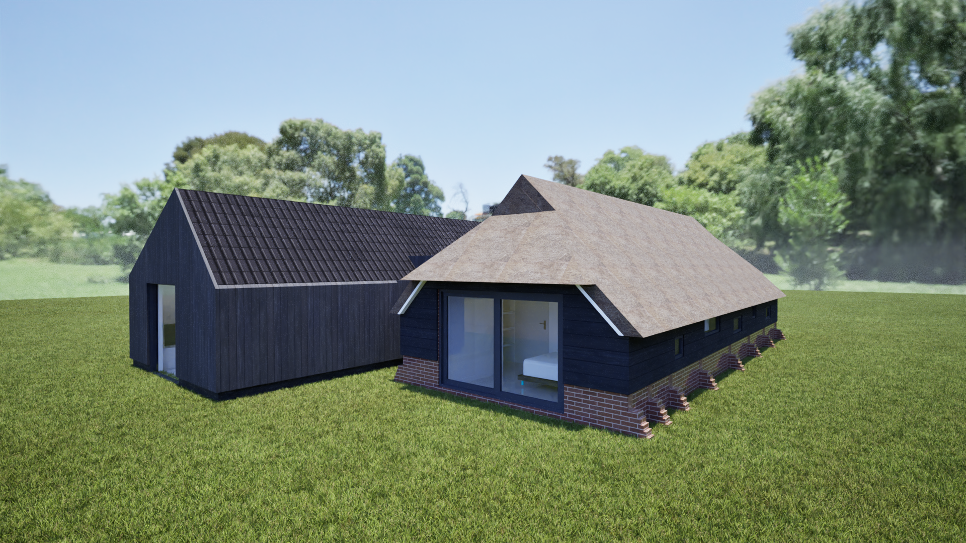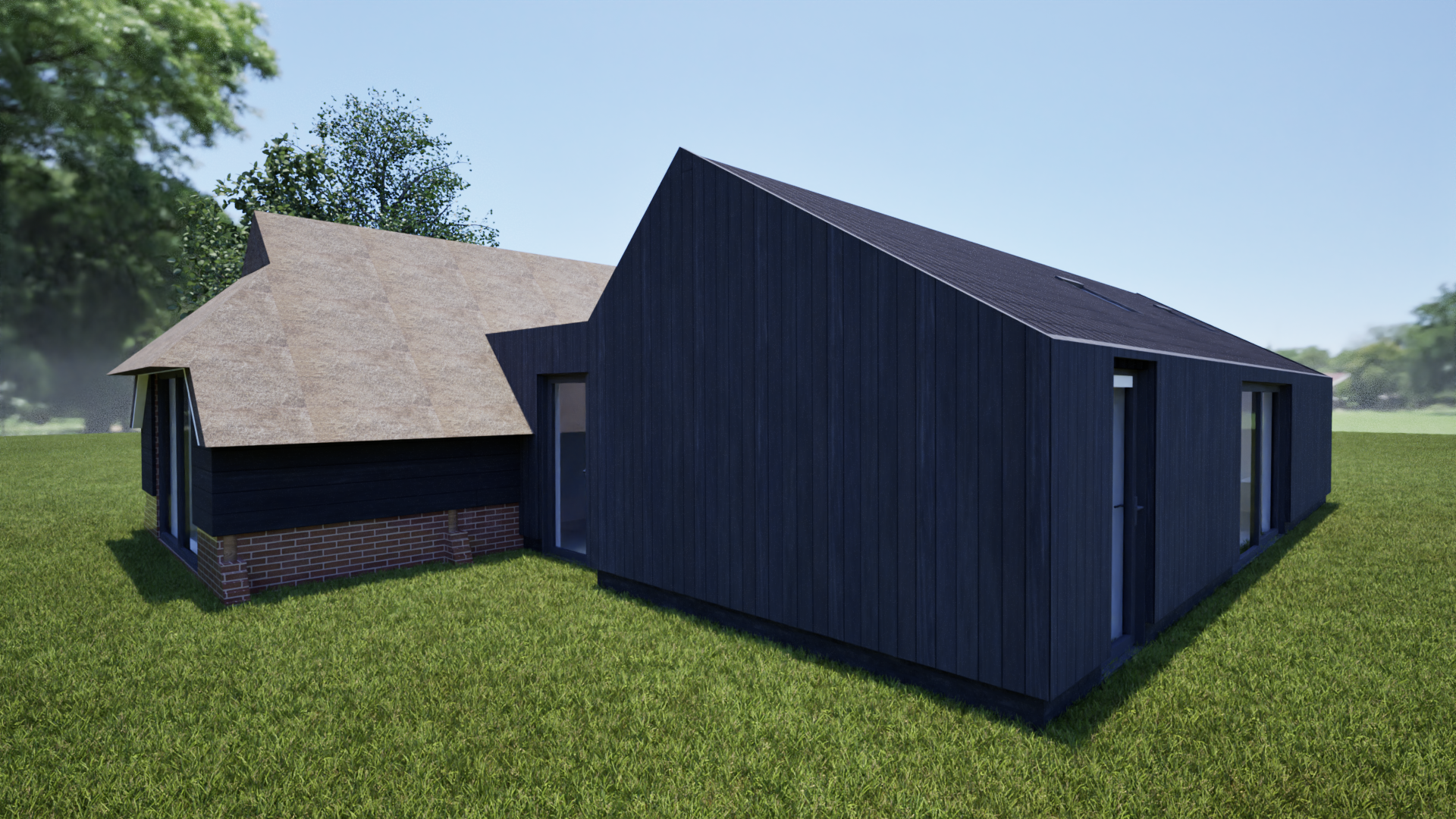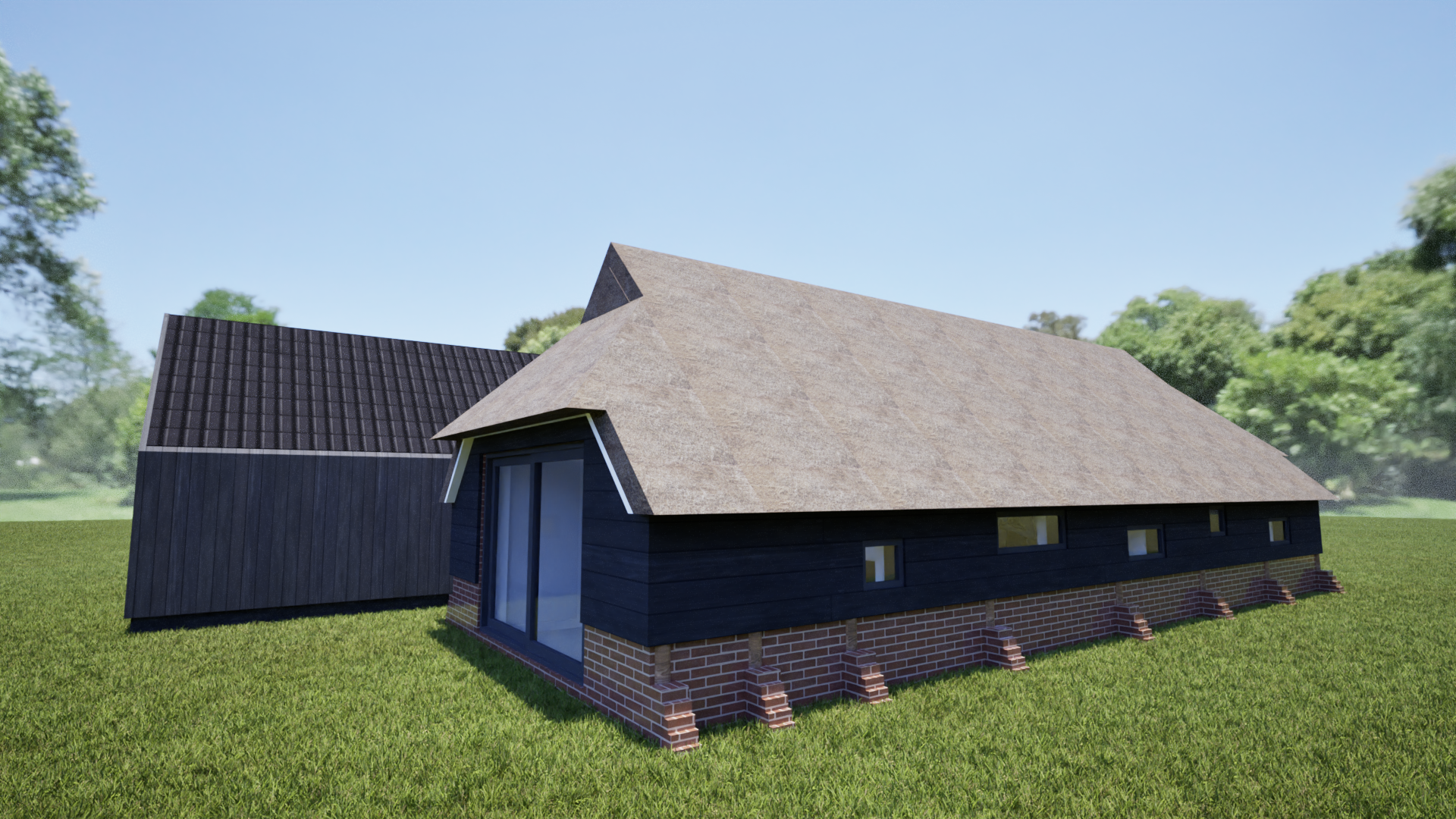 Een voormalige schaapskooi is in het verleden verbouwd tot woonhuis met een kleine aanbouw. De leefruimte was nog steeds erg beperkt en de nieuwe eigenaren hadden de wens om meer ruimte en lucht te creëren in de woning. De eigentijdser vormgegeven nieuwe aanbouw en enkele kleine ingrepen in de monumentale schuur hebben meer eenheid gebracht in het geheel. De schaapskooi is onderdeel van een ensemble van een (aan de overzijde van de weg gelegen) boerderij met schuren. Bij een rijksmonument wordt het ontwerp beoordeeld door de monumentencommissie en de Rijksdienst voor het Cultureel Erfgoed.
