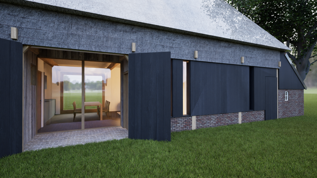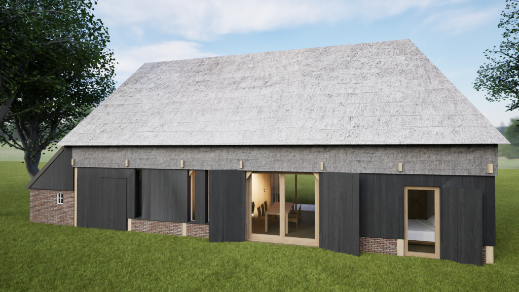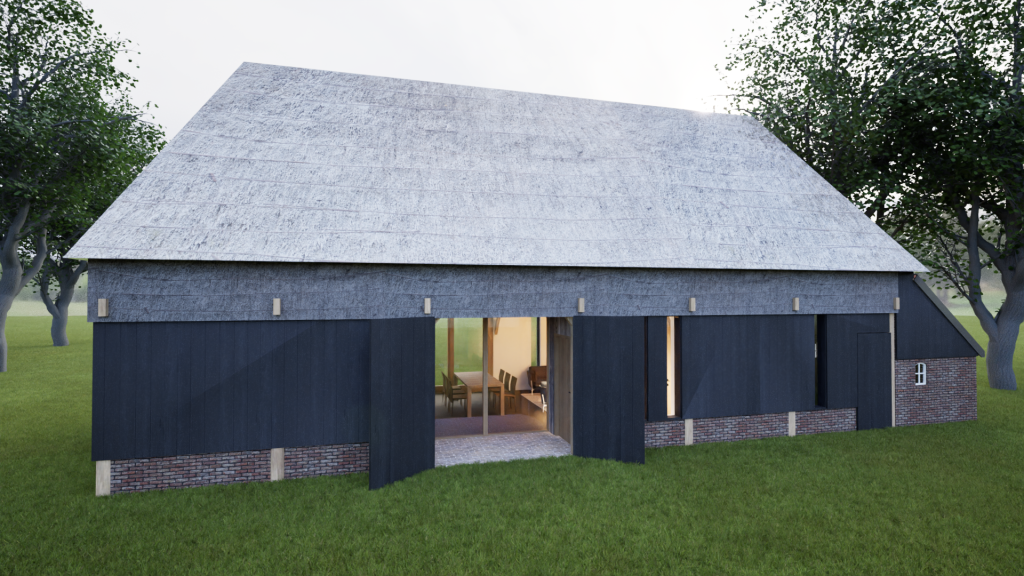 In zuid Drenthe staat achter een boerderij deze prachtige oude rietgedekte schuur. Zowel de boerderij als de schuur zijn rijksmonument. Eigenaren willen de schuur restaureren en herbestemmen tot ‘Bed en Breakfast’ onderkomen. Voor het verkrijgen van een omgevingsvergunning is naast een goed doordacht ontwerp ook een onderbouwing (restauratievisie) nodig waarin omschreven staat hoe er met de bouwhistorische onderdelen wordt omgegaan. Voor het opstellen van een dergelijke onderbouwing is een verkennend bouwhistorisch onderzoek nodig met de daarbij horende waardestelling- en dateringstekeningen. Uitgaande van al deze informatie wordt op basis van het programma van eisen van de opdrachtgever een ontwerp gemaakt waarbij de cultuurhistorische waarde versterkt wordt en zo min mogelijk aangetast.